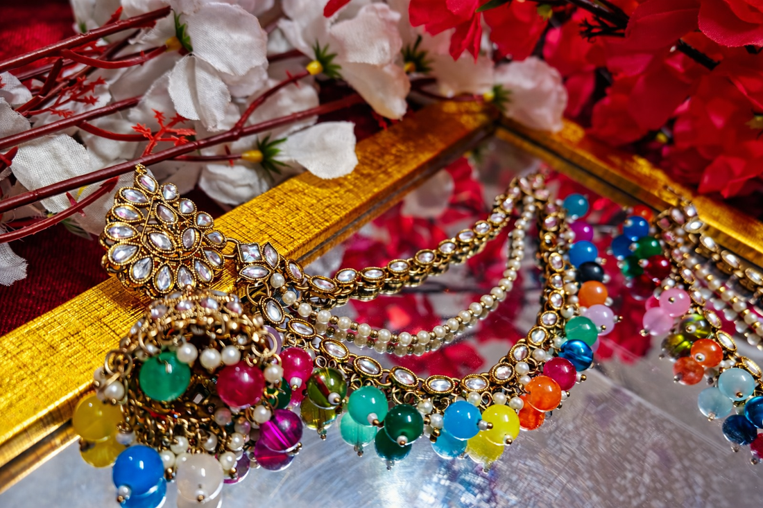 Royal Kundan Multi-Color Beaded Kaanchain Set