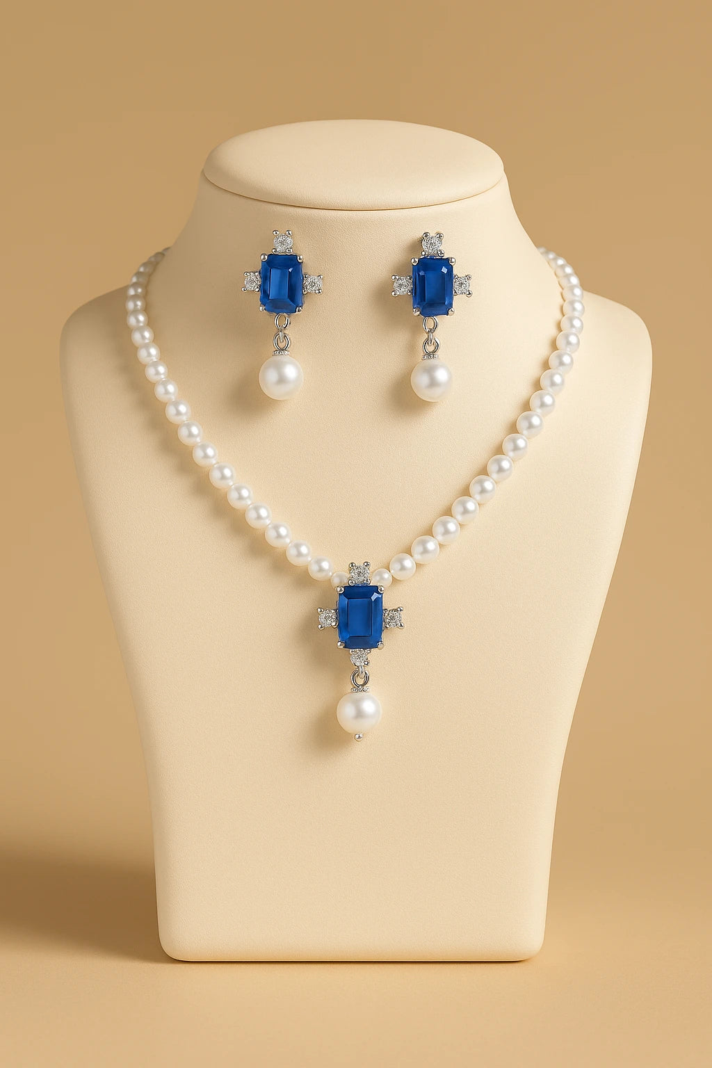 Qarin AD Diamond Cut Pearl Necklace With Earing