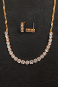 Elevate your look with this stunning gold-plated tennis necklace set featuring high-quality sparkling crystals. Its timeless, minimal design makes it perfect for weddings, parties, or everyday elegance. Comes with matching crystal stud earrings for a complete, sophisticated finish.
