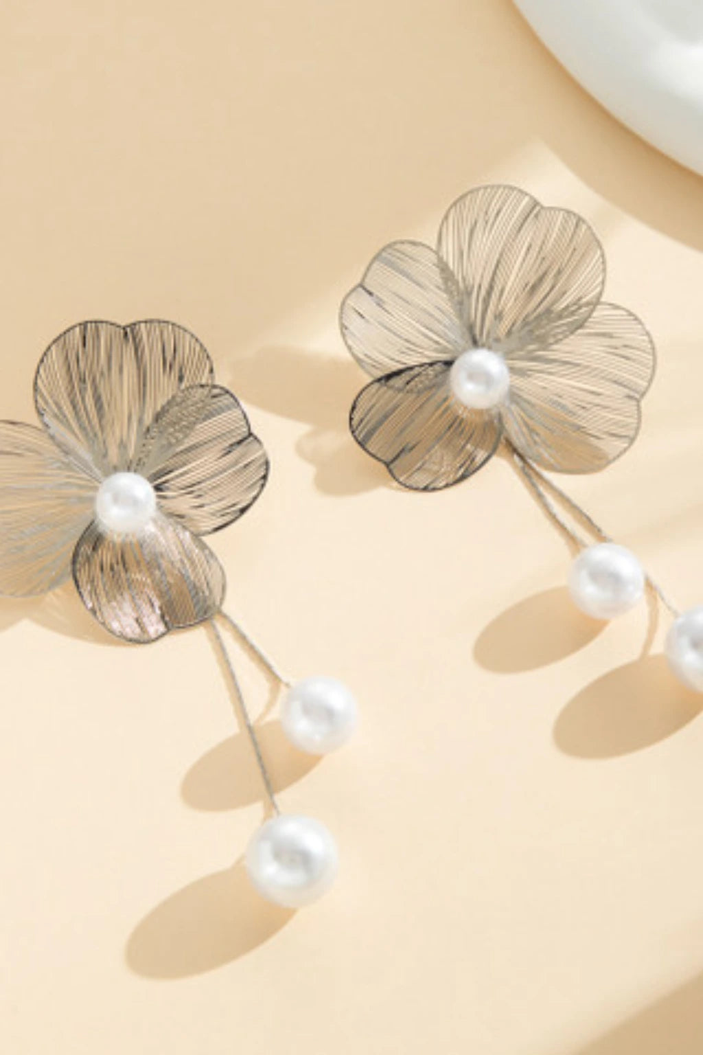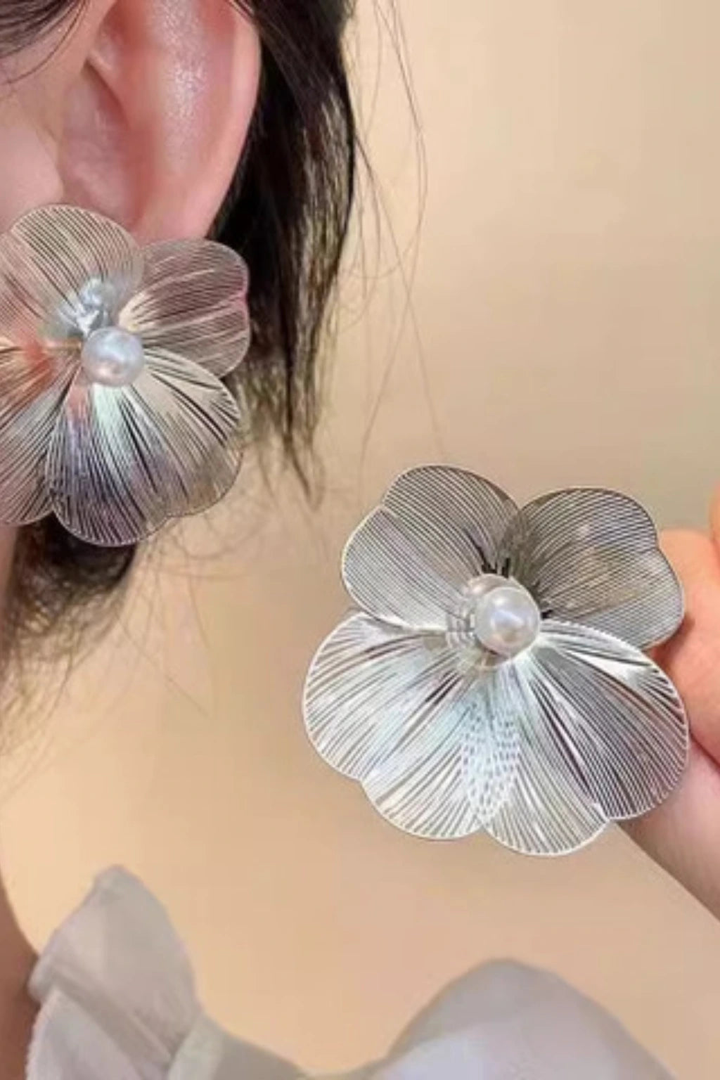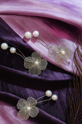 These Gold Floral Pearl Bloom Earrings bring a graceful blend of modern artistry and timeless beauty. Featuring delicate gold wire flowers accented with lustrous pearls, they are the perfect accessory for weddings, festive celebrations, or elegant evening looks.